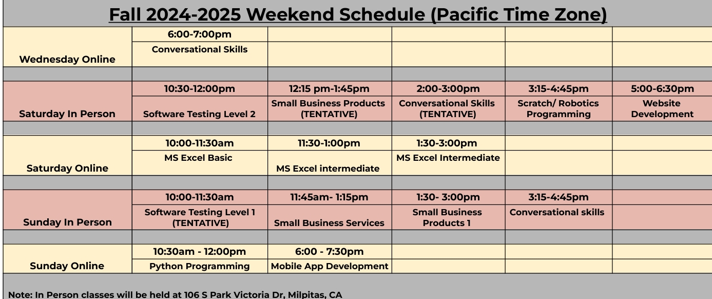 Fall 2024 weekend session will start on September 7th and 8th, 2024.
